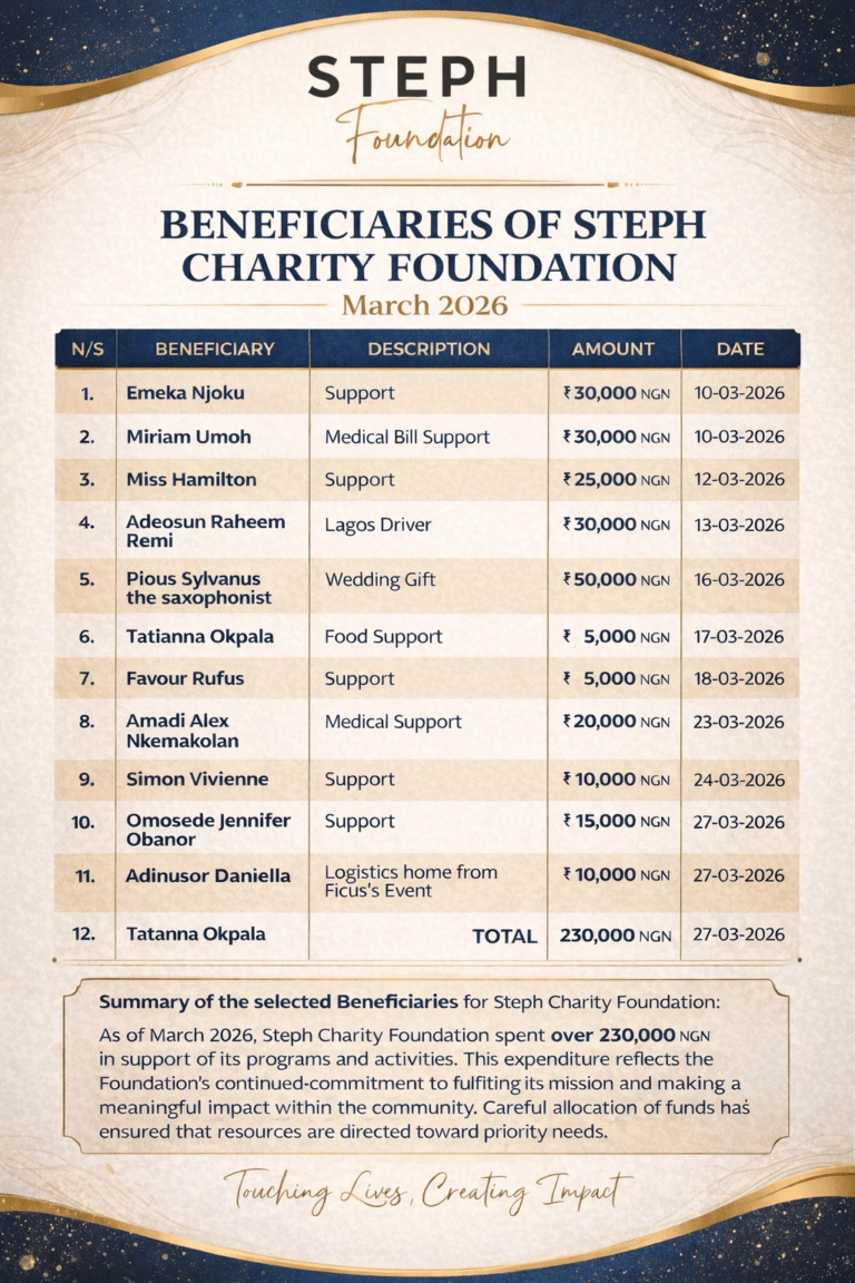 In the month of February 2026, Steph Charity Foundation continued its unwavering commitment to compassion, community development, and timely intervention. We are proud to announce